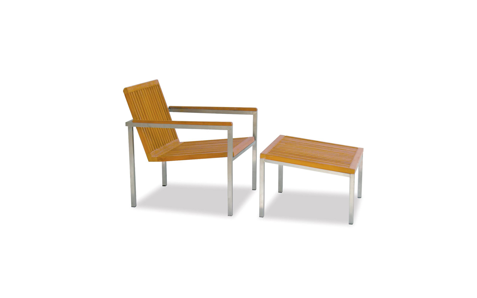 Stackable Chair, Recliner, Footrest, and Lounger is a kind of outdoor armchair. When it combined with Brushed Stainless Steel material and Teak wooden armrest, a splendid style of Violette "Teak" | Outdoor Large Arm Chair is born. Violette is a new style of leisure & outdoor furniture, which designed by considering the human body comfort.