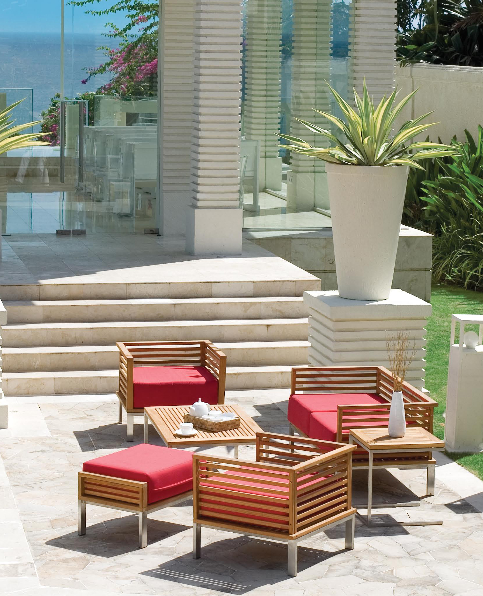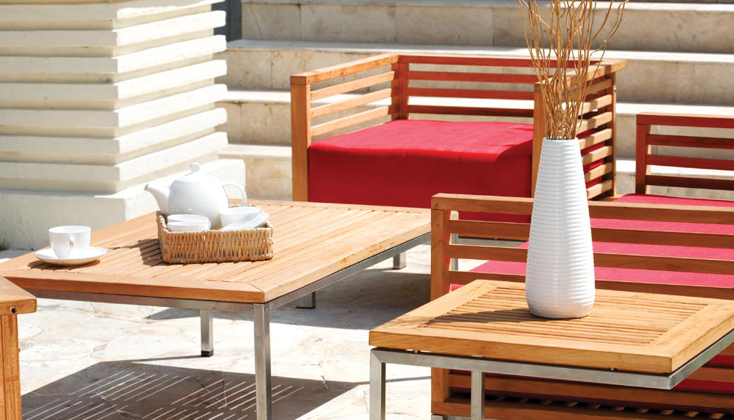 Violette "Teak" | Outdoor Sofa is a stainless steel outdoor sofa designed for modern outdoor living. The unique design of the Violette dining chairs, benches and tables are made with high quality stainless steel which is easy to clean and durable.